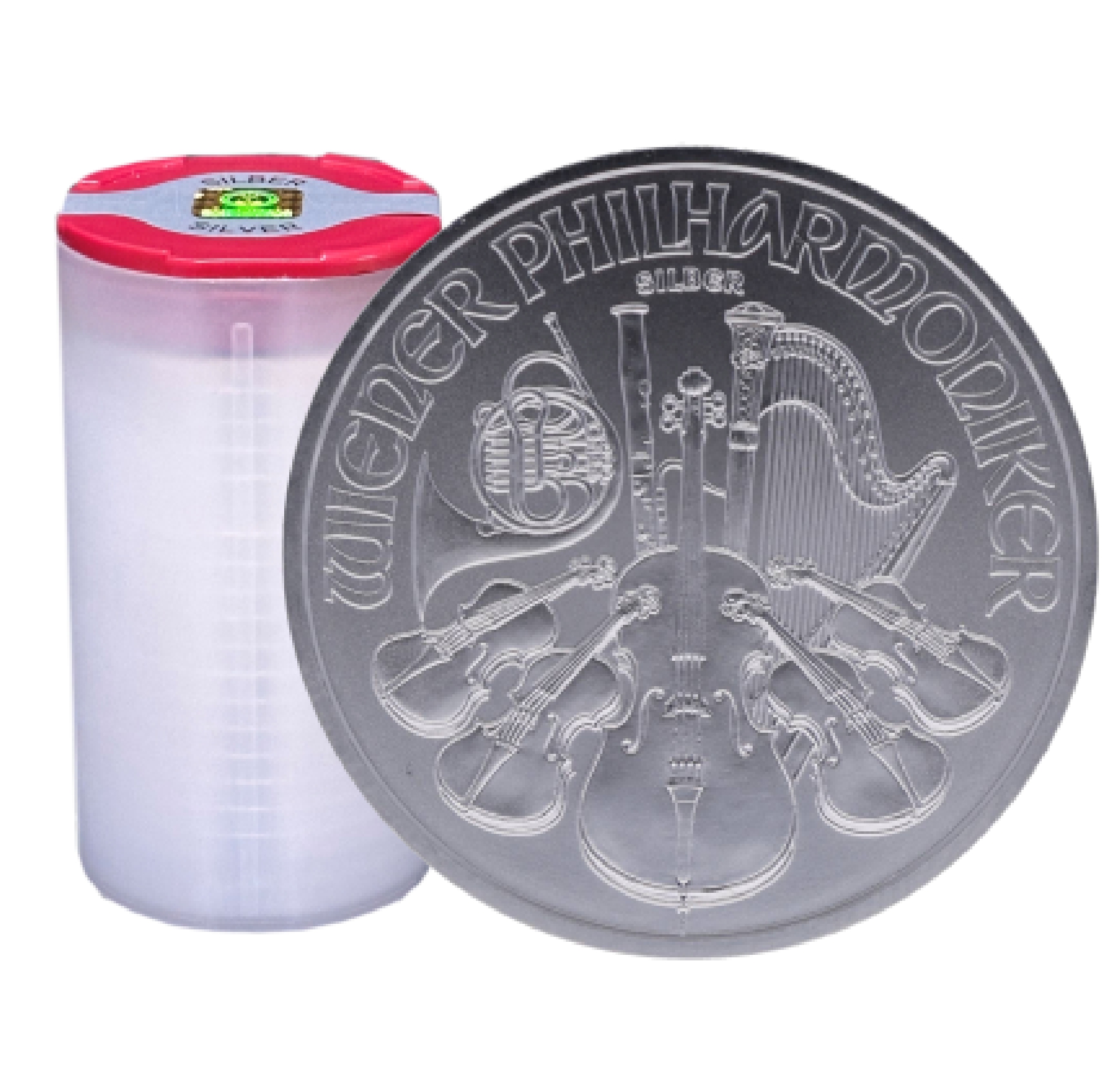 Tube zilveren Maple Leaf. 25 x 1 troy ounce munt